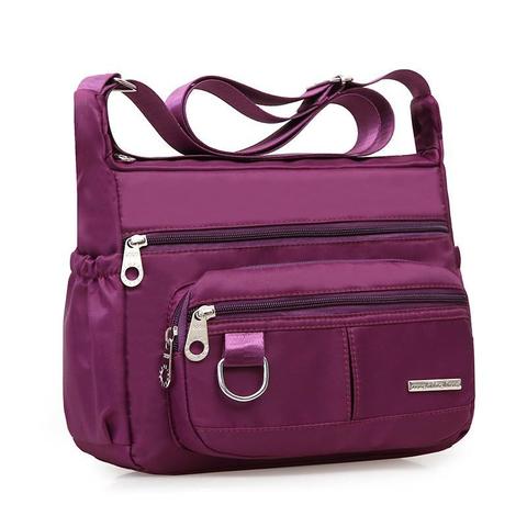 Bolso de hombro cruzado de gran capacidad para mujer, tela impermeable con cierre de cremallera, monedero informal de Color sólido